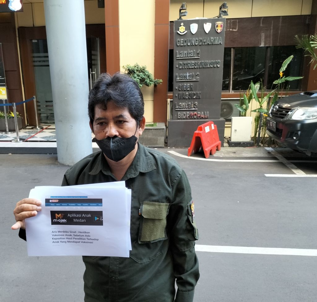 Ketua Ormas Macita, Mohammad Hasan mengatakan, pihaknya melaporkan Arist atas statement di sejumlah media yang meminta vaksinasi terhadap anak usia 6-11 tahun, karena disebut berbahaya bagi tumbuh kembang anak.