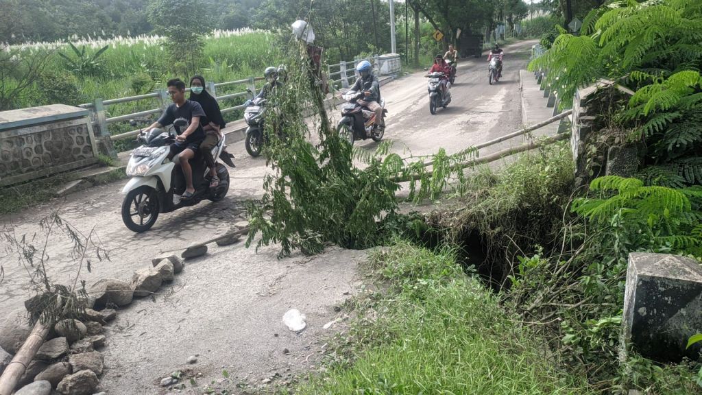 "Lubang ini akibat talud jembatan ambrol, sudah 7 bulan lalu, mulai satu bulan ini hanya bisa dilintasi satu jalur saja. Karena lubang sudah hampir setengah badan jalan," ujarnya, Jumat (27/05/2022).