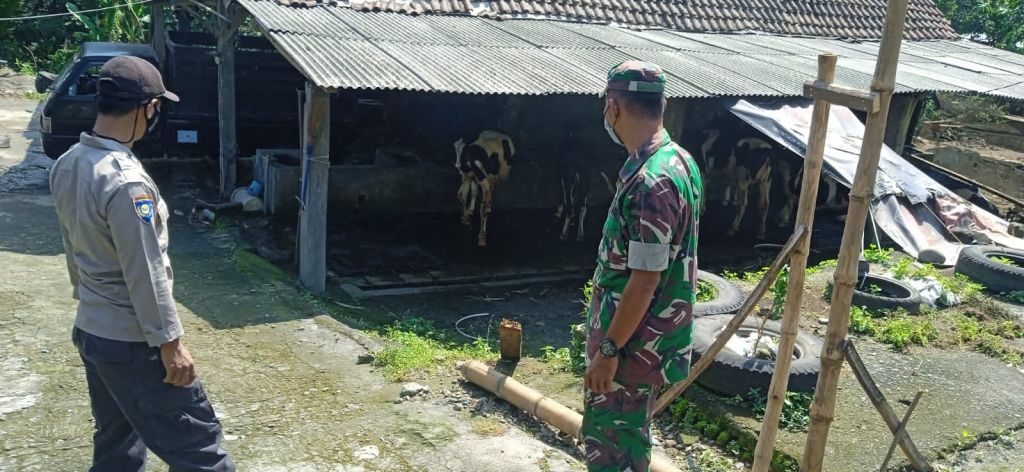 BATU (Realita)- Sinergitas Bhabinkamtibmas dan Babinsa dalam upaya mengantisipasi penyebaran wabah PMK (Penyakit Mulut dan Kuku) agar tidak meluas di wilayah kecamatan Kasembon Kabupaten Malang.