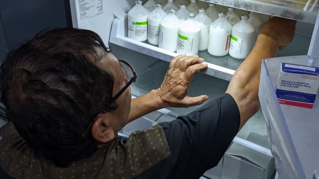 Tercatat, 80 botol vaksin bertuliskan Merial Aftopor, dimasukkan dalam 3 box besar yang diangkut menggunakan mobil Bidang Peternakan Dispertahankan Ponorogo. Usai tiba pukul 15.00 sore, puluhan botol berwarna putih itu langsung dimasukkan ke lemari pendingin.