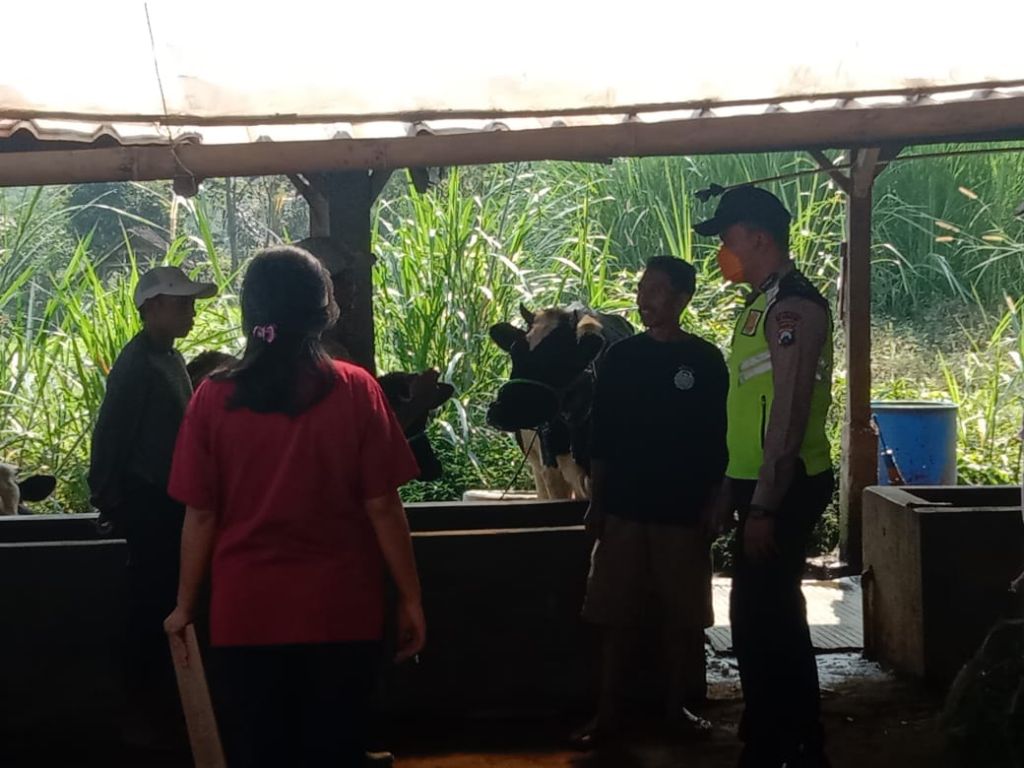 BATU (Realita)- Para Bhabinkamtibmas Polres Batu diterjunkan guna mendampingi petugas Vaksinator dari dinas Pertanian dan peternakan untuk melakukan Vaksinasi terhadap hewan ternak.