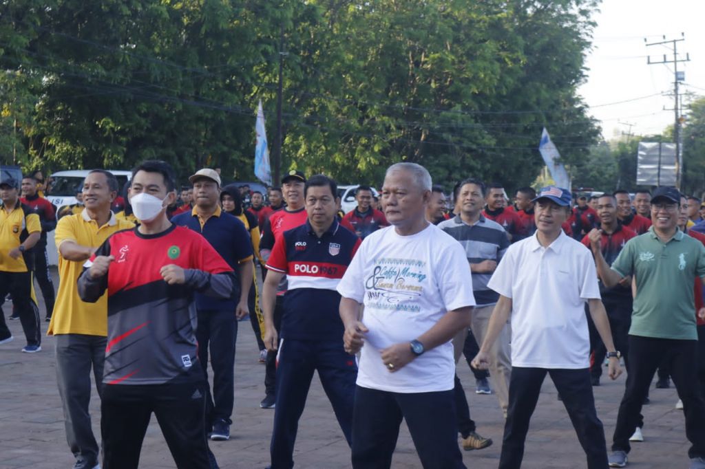 MUARA ENIM (Realita) - Dalam rangka menyambut dan menyemarakkan peringatan Hari Bhayangkara ke-76 tahun 2022, Pj. Sekretaris Daerah Kabupaten Muara Enim, H. Riswandar, S.H., M.H., (01/07) mengikuti senam bersama yang digelar Polres Muara Enim beserta jajaran di Kolam Retensi Taman Adipura.