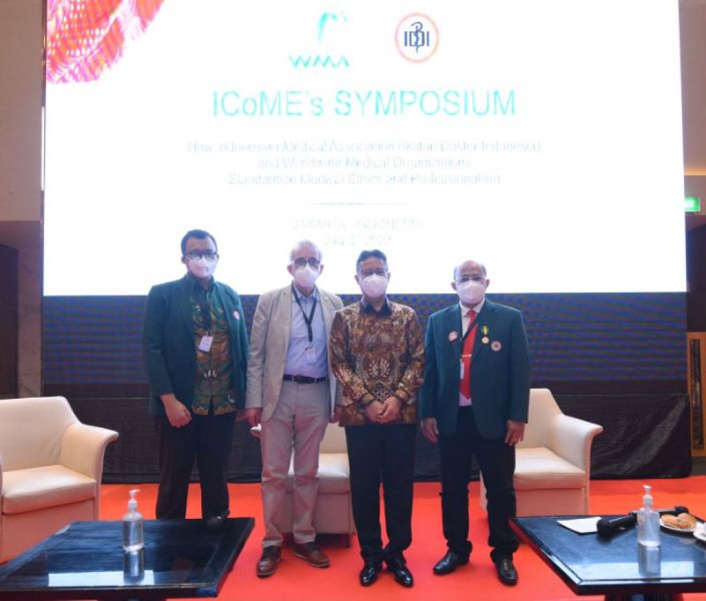JAKARTA- Pengurus Besar Ikatan Dokter Indonesia (PB IDI) bersama World Medical Association (Asosiasi Dokter Sedunia) menyelenggarakan Simposium International Code of Medical Ethics (ICoME) bekerjasama dengan World Medical Association atau Asosiasi Dokter Medis Sedunia. Simposium ini merupakan pembukaan dari rangkaian konferensi World Medical Association yang berlangsung Senin-Selasa (4-5 Juli 2022) di Jakarta.