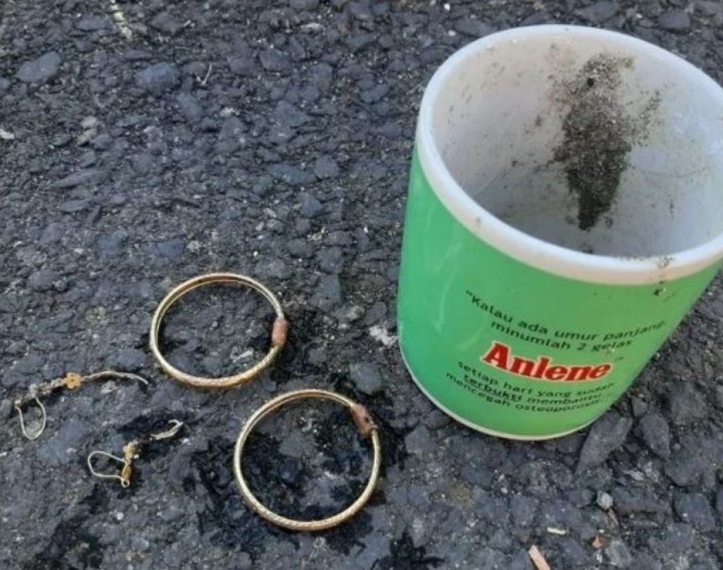 Saat korban tewas, pelaku lantas mengambil anting dan gelas emas korban. Sementara jasad korban dibuang dalam selokan. Agar tak terlihat, jasad korban juga ditutup dengan batu bata.kep