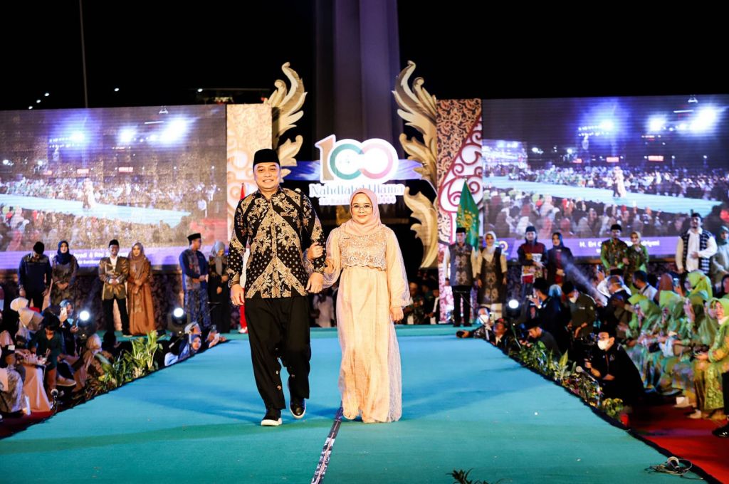 Tak hanya itu, Wali Kota Eri Cahyadi bersama Ning Rini Indriyani tampak selaras saat mengenakan busana dari para desainer muda NU, yang berasal dari Pondok Pesantren (Ponpes) Syaichona Moh. Cholil Bangkalan Madura, Ning Ficky Aisya istri Ra Nasih dan Listya Ayu Qudus.