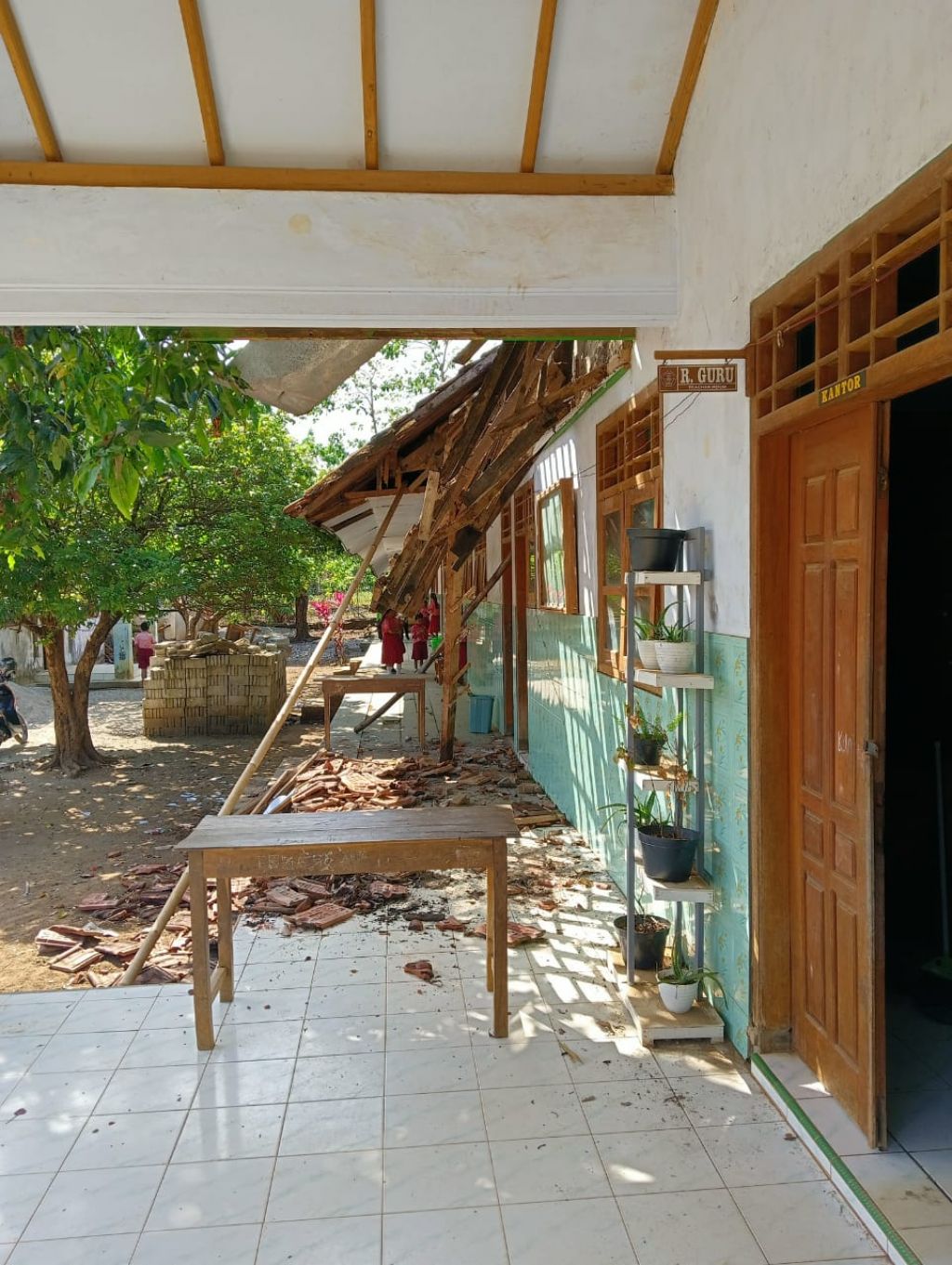 " Sementara ini masih diruangan anak-anak belajar. Tapi infonya Senin depan para wali murid akan membangun tenda untuk belajar siswa. Karena kondisi sekolah yang rusak ini," akunya.