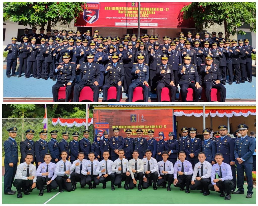 SEMARANG (Realita) - Dalam rangka memperingati Hari Dharma Karya Dhika, Kepala Unit Pelaksana Teknis Se-Jawa Tengah melaksanakan Upacara HDKD Ke-77, yang bertempat di Kantor Kementerian Hukum dan HAM Kantor Wilayah Jawa Tengah, Jumat (19/08/2022).