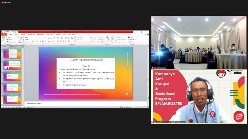 Kurang lebih 50 orang mengikuti kampanye secara hybrid ini. Mereka, 30 karyawan-karyawati BPJS Ketenagakerjaan Gresik yang mengikuti melalui zoom (daring), dan 20 orang dari kalangan stakeholder dan rekanan yang hadir secara langsung (luring).