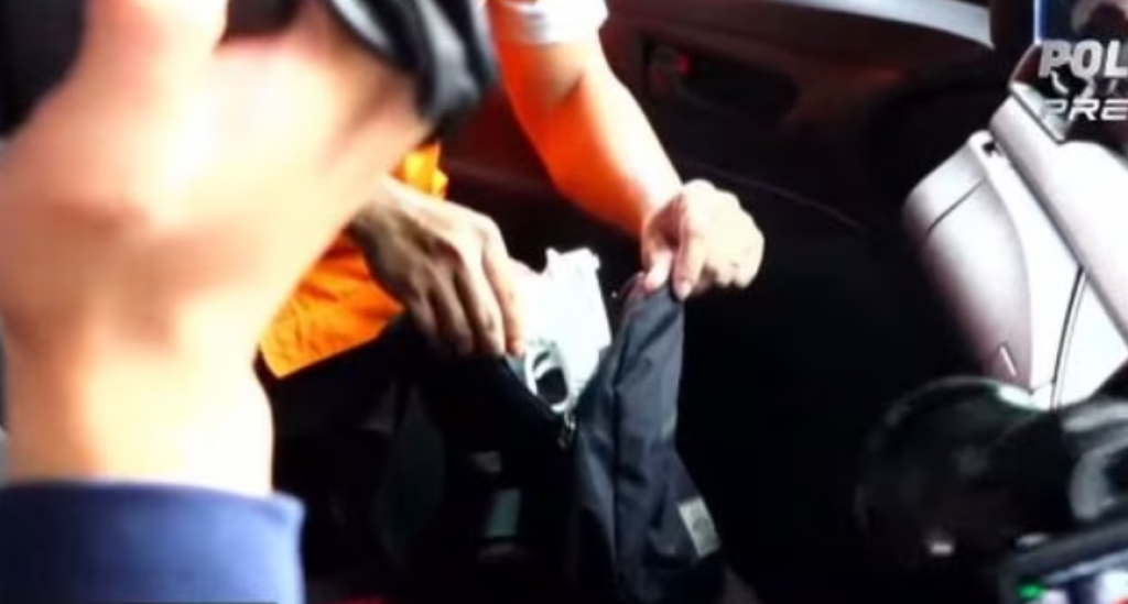 Dia memperagakan membuka laci dasbor mobil. Setelah itu, dia memperagakan memasukkan satu senjata lagi ke dalam tas berwarna hitam. Sehingga ada dua senjata yang dibawa Bharada E saat di rumah pribadi Sambo di Saguling.