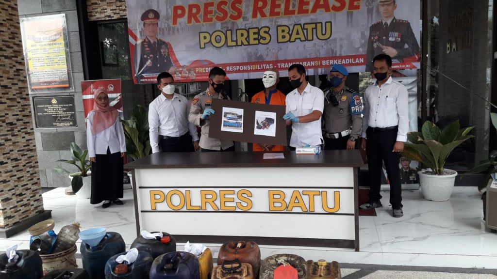 BATU (Realita)- Polres Batu berhasil mengungkap kasus tindak pidana dugaan penyalahgunaan Bahan Bakar Minyak (BBM) bersubsidi jenis solar yang dilakukan pelaku berinisial WD (60) pekerjaan karyawan swasta beralamat Dusun Krajan, Desa Ngroto, Kecamatan Pujon, Kabupaten Malang.