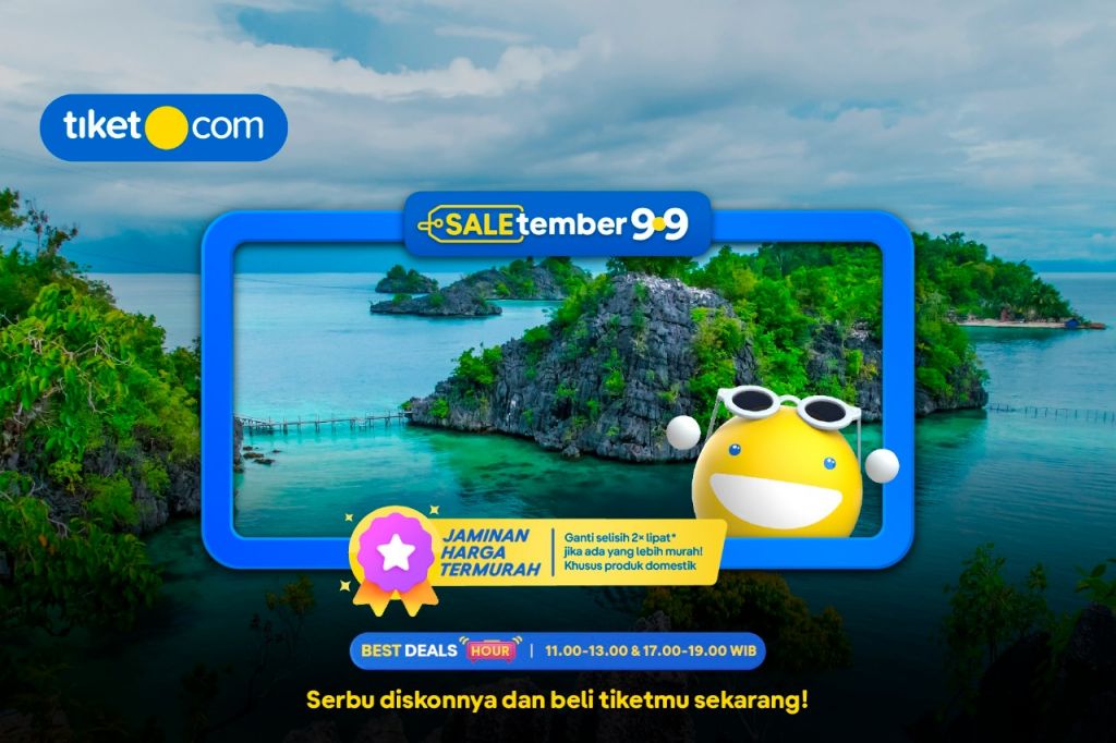 INDONESIA (Realita) - tiket.com, OTA pertama di Indonesia, gelar SALETEMBER 9.9 mulai tanggal 07 hingga 14 September 2022. Dengan jajaran penawaran diskon tiket murah di tanggal kembar, yaitu diskon hingga 50% + ekstra diskon hingga Rp 999.000 yang patut dimanfaatkan oleh masyarakat Indonesia yang sudah tidak sabar menciptakan memori baru bersama keluarga dan sahabat.