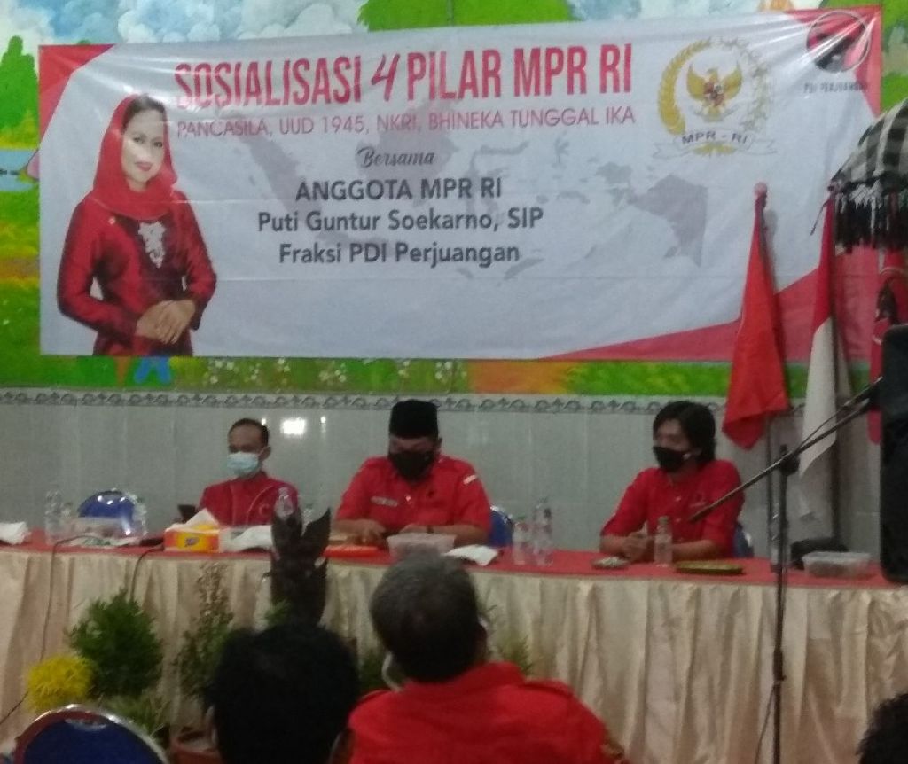 SURABAYA(Realita)-Pandemi Covid-19 tak menghalangi Puti Guntur Soekarno mensosialisasikan 4 Pilar MPR RI. Cucu Soekarno meminta kader PDI Perjuangan bisa memahami ideologi bangsa dengan benar.