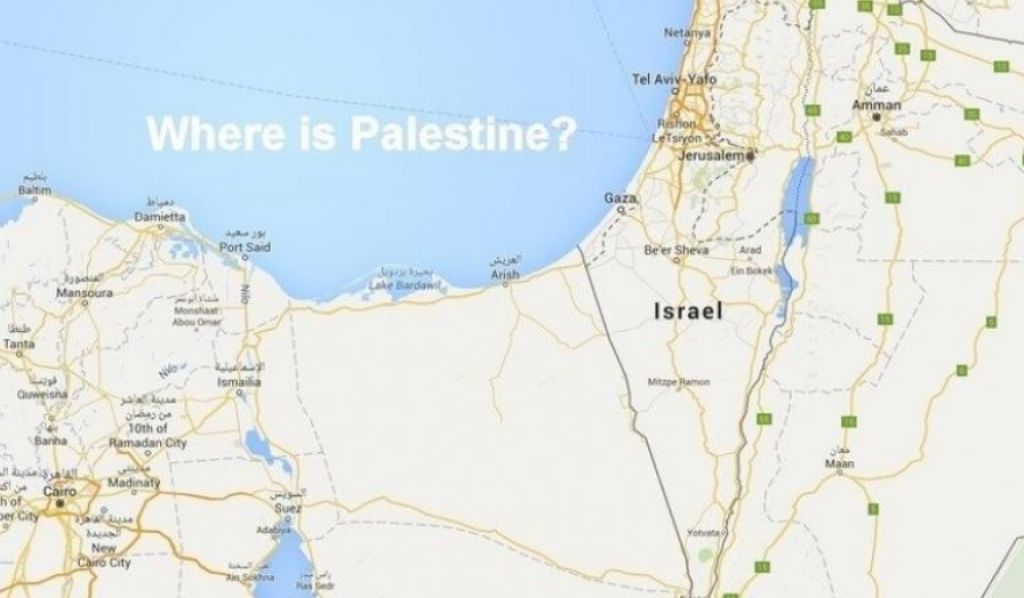 Palestina tidak muncul di peta Google, sedangkan Israel yang didirikan di atas tanah Palestina bisa terlihat sangat jelas ada. Menurut Google, Palestina tidak ada.