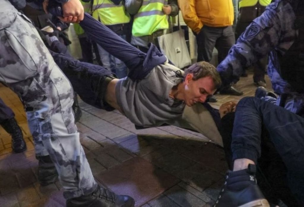 Seorang perempuan berkata kepada media online independen Mediazoba bahwa suaminya ditahan saat protes anti-perang berlangsung di Arbat, pusat kota Moskow.ik