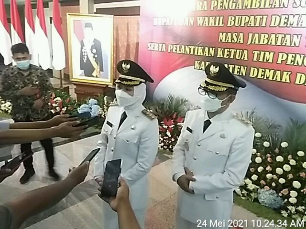 SEMARANG (Realita)- Senin (24/05/2021), telah dilaksanakan Pelantikan dr.Eistianah ,SE sebagai Bupati Demak dan KH Ali Makhsun MS.i, sebagai Wakil Bupati Demak di gedung Grahadika Bhakti Praja oleh Gubernur Jateng.
