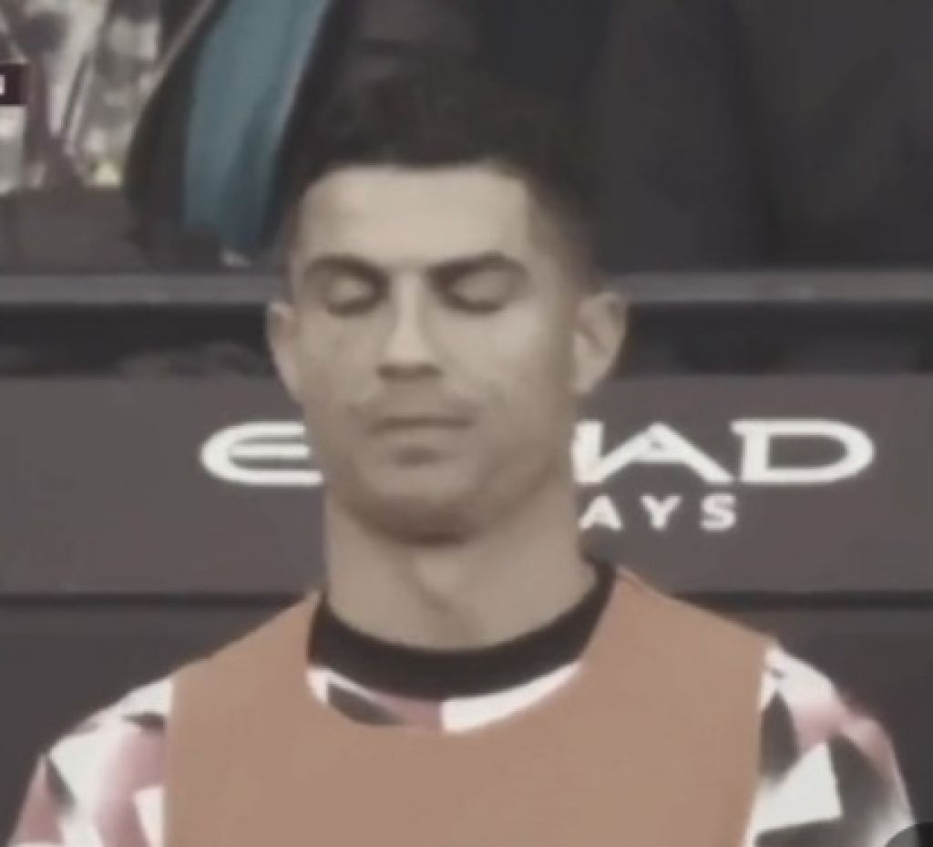 Di tengah-tengah pertandingan, kamera beberapa kali menyoroti Ronaldo di bench tim tamu. Tampak ekspresinya menenggelamkan wajah di kedua telapak tangan, sampai bertopang dagu dan melihat ke kejauhan.