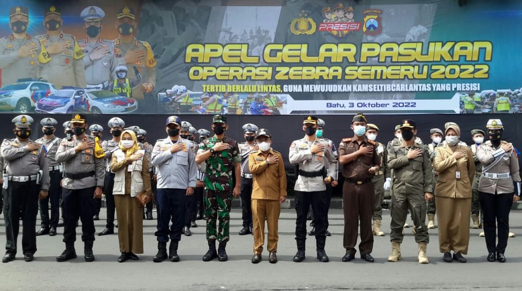 Hal ini disampaikan oleh Kapolres Batu sesuai Apel Gelar Gelar Pasukan Operasi Zebra Semeru 2022, di depan Alun- Alun Kota Batu, Senin (3/10/2022)