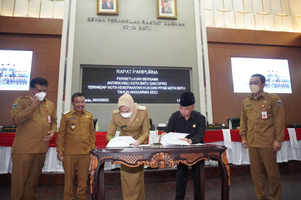 Wakil Walikota Batu, Punjul Santoso mengungkapkan , penandatanganan nota kesepakatan KUA PPAS tahun 2023 antara Ketua DPRD dan Walikota Batu Dewanti Rumpoko yang mana dalam kesepakatan itu ada dua sisi yakni pendapatan daerah dan belanja daerah APBD-P tahun 2023.