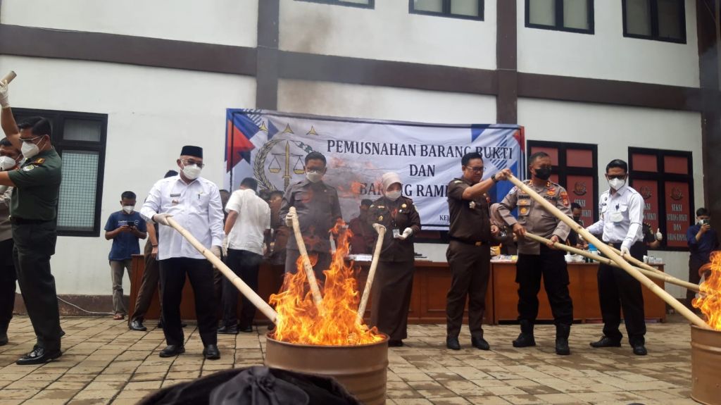 Digelar di halaman kantor Kejaksaan Negeri Depok, pemusnahan yang dipimpin oleh Kajari Mia Banulita itu dilakukan terbuka dan disaksikan oleh sejumlah awak media serta unsur forkopimda setempat.