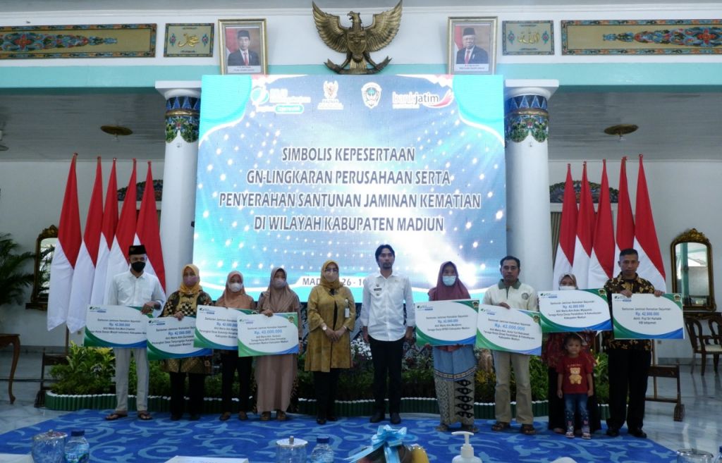 "Penyerahan santunan Jaminan Kematian oleh Bupati Madiun ini merupakan bentuk bukti nyata Negara hadir, sekaligus bukti bahwa BPJAMSOSTEK telah memberikan manfaat kepada pesertanya yang mengalami resiko," lanjutnya.