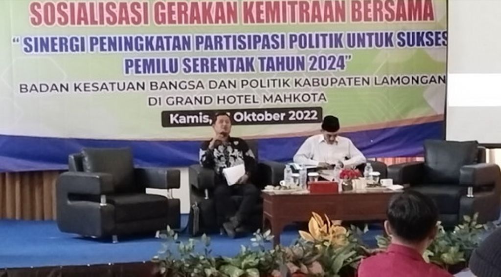 LAMONGAN (Realita) – Badan Kesatuan Bangsa dan Politik (Kesbangpol) Kabupaten Lamongan melaksanakan kegiatan sosialisasi gerakan kemitraan bersama dalam sinergi peningkatan partisipasi politik untuk suksesnya pemilu serentak tahun 2024.
