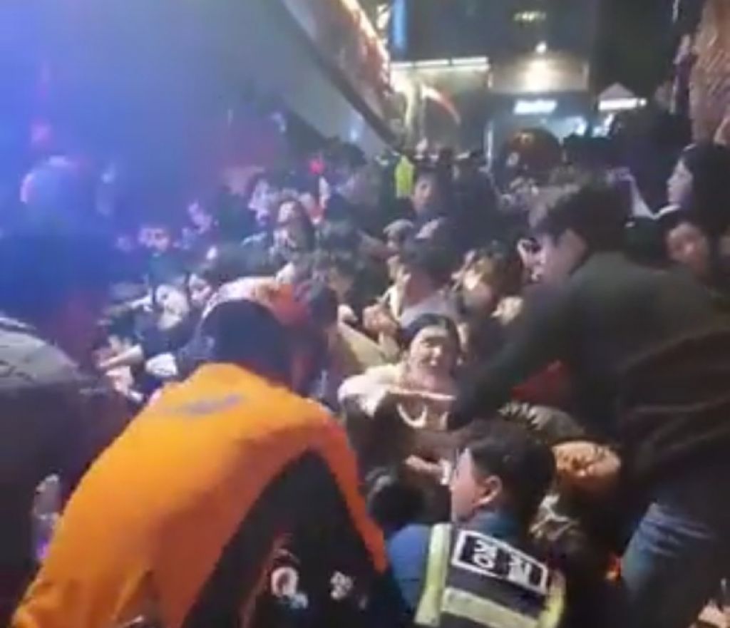 “Ketika orang-orang di depan jatuh, mereka yang di belakang terlindas,” kata seorang saksi mata berusia 20-an kepada Kantor Berita Yonhap.