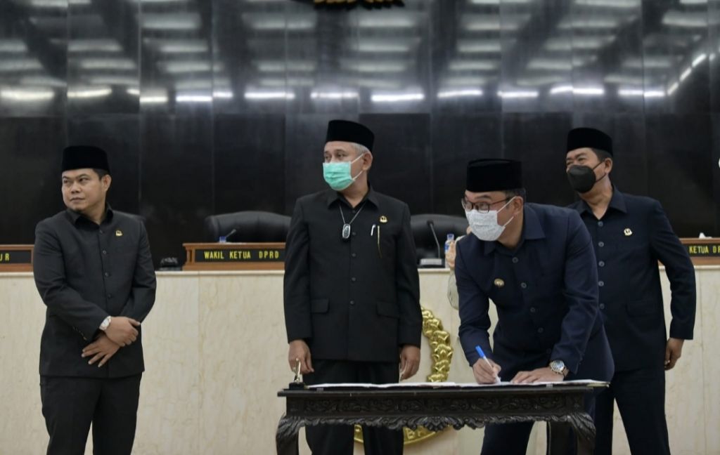 KOTA BANDUNG (Realita)- Gubernur Jawa Barat Ridwan Kamil menandatangani Nota Kesepakatan Perubahan Kebijakan Umum APBD (KUA) dan Nota Kesepakatan Perubahan Prioritas Plafon Anggaran Sementara (PPAS) Tahun Anggaran 2022 dalam Rapat Paripurna di Gedung DPRD Provinsi Jabar, Jalan Diponegoro, Kota Bandung, Rabu (14/9/2022).