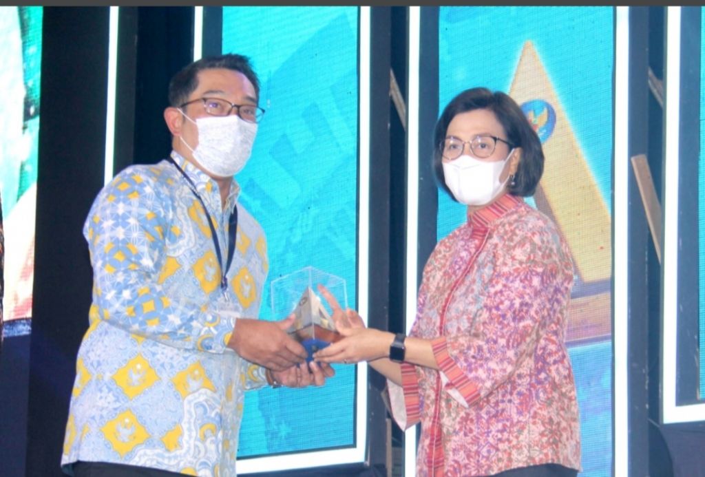 Apresiasi tersebut diserahkan langsung oleh Menteri Keuangan Sri Mulyani kepada Gubernur Jabar Ridwan Kamil dalam Rapat Kerja Nasional (Rakernas) Akuntansi dan Pelaporan Keuangan Pemerintah Tahun 2022 di Gedung Dhanapala, Kementerian Keuangan RI, Jakarta, Kamis (22/9/2022).