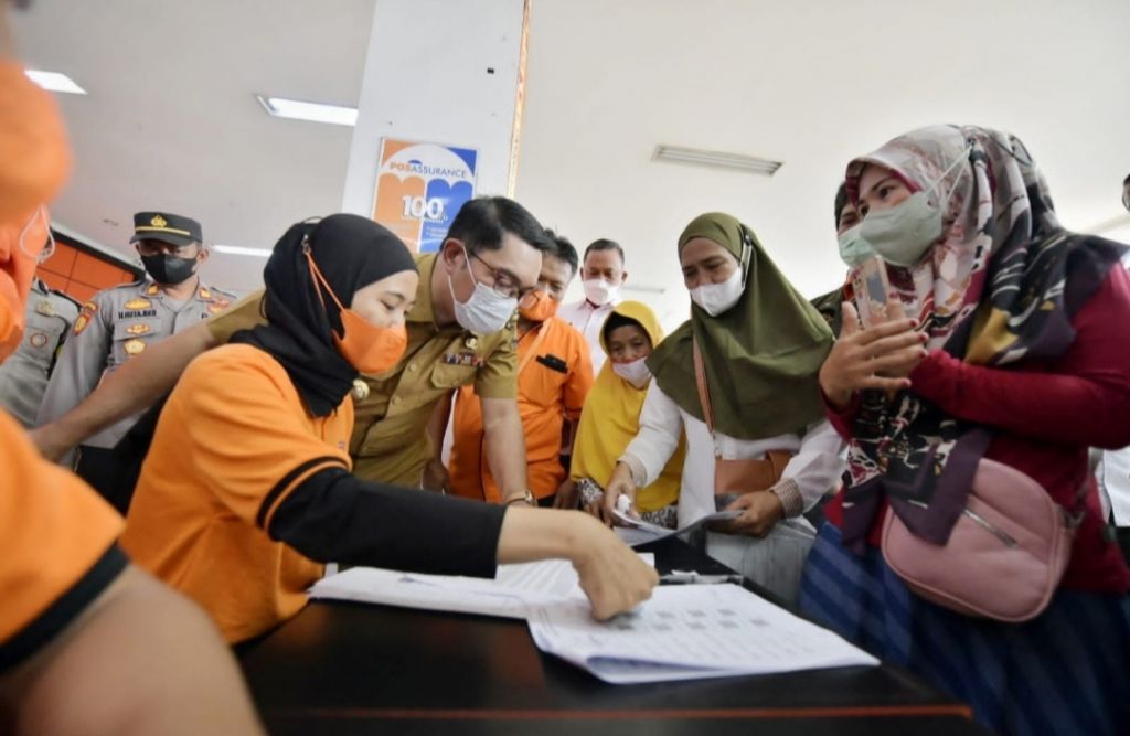 KOTA BEKASI (Realita)- Gubernur Jawa Barat Ridwan Kamil memantau proses pembagian Bantuan Langsung Tunai Bahan Bakar Minyak di Kantor Pos, Jalan Lapangan Multiguna, Kota Bekasi, Selasa (20/9/2022).