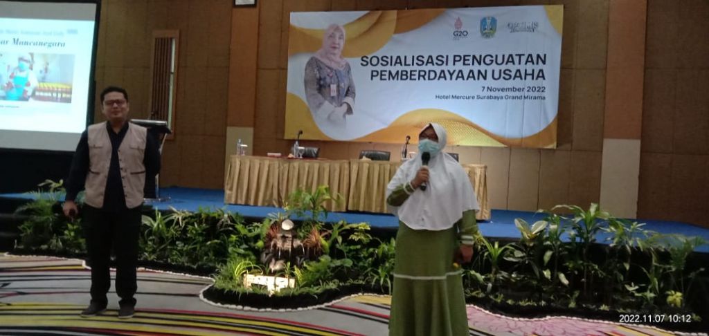 Kepala Dinas Koperasi dan UKM Provinsi Jawa Timur yg diwakili oleh Dra. Susanti Widyastuti, MT selaku Kepala Bidang Produksi Usaha Dinas Koperasi UKM Prov.Jatim menjelaskan bahwa UMKM merupakan penopang yang sangat besar bagi ekonomi Jawa Timur dan merupakan tulang punggung atau backbound yakni karena sebanyak 57,81% merupakan peran dari UMKM