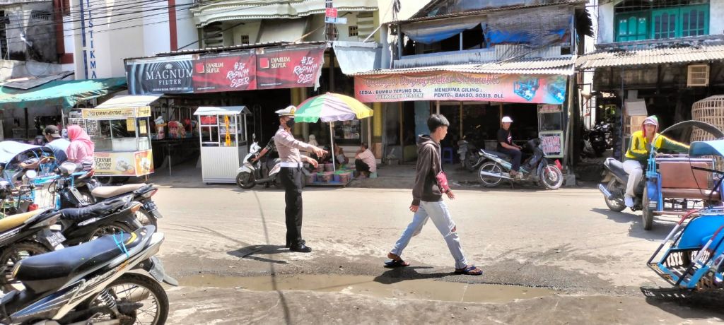 LAMONGAN (Realita) - Sejumlah anggota Kepolisian dari Sektor (Polsek) Paciran, berupaya mengatur lalu lintas di salah satu ruas jalan di sekitar pusat perbelanjaan yang ada di wilayah setempat, Kamis (01/12/2022). Kapolsek Paciran, Iptu. Purnomo, menjelaskan jika kepadatan lalu lintas kerap terjadi terutama di waktu pagi hari.