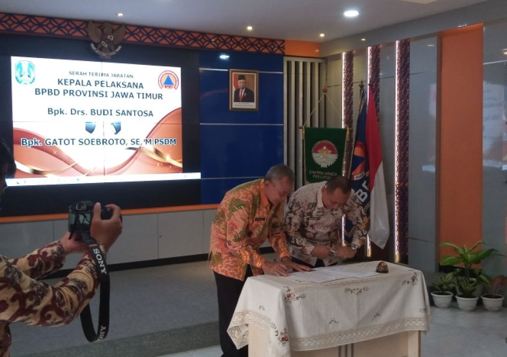 SIDOARJO (Realita)-Jabatan kepala pelaksana (Kalaksa) BPBD Jawa Timur (Jatim) resmi diserahterimakan. Kalaksa BPBD Jatim yang baru dijabat oleh Gatot Soebroto. Ia menggantikan Budi Santosa yang selanjutnya mengisi jabatan kepala Bakorwil III Malang. Sedangkan Gatot Soebroto sebelumnya menjabat kepala Biro Kesra Setdaprov Jatim.