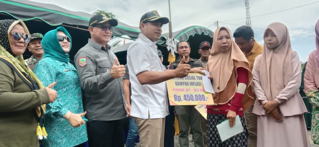 KOTABARU (Realita) - Ketua DPRD Kotabaru Syairi Mukhlis hadiri Penyerahan Bantuan Sosial Pengendali Inflasi Daerah di bertempat di Desa Bungukukan Kecamatan Kelumpang Barat Kabupaten Kotabaru Kalsel, Sabtu (10/10/2022).