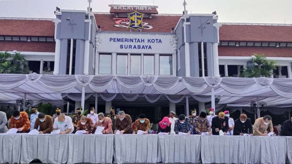 Upaya memperkuat jaringan dilakukan Rektor Untag Surabaya-Dr. Mulyanto Nugroho, MM., CMA., CPA. dengan penandatanganan Memorandum of Understanding (MoU) Tri Dharma dan Implementasi Merdeka Belajar Kampus Merdeka (MBKM) dengan pemerintah Kota Surabaya. Penandatanganan MoU secara luring ini dilakukan di Balai Kota Surabaya dengan mematuhi protokol kesehatan secara ketat.