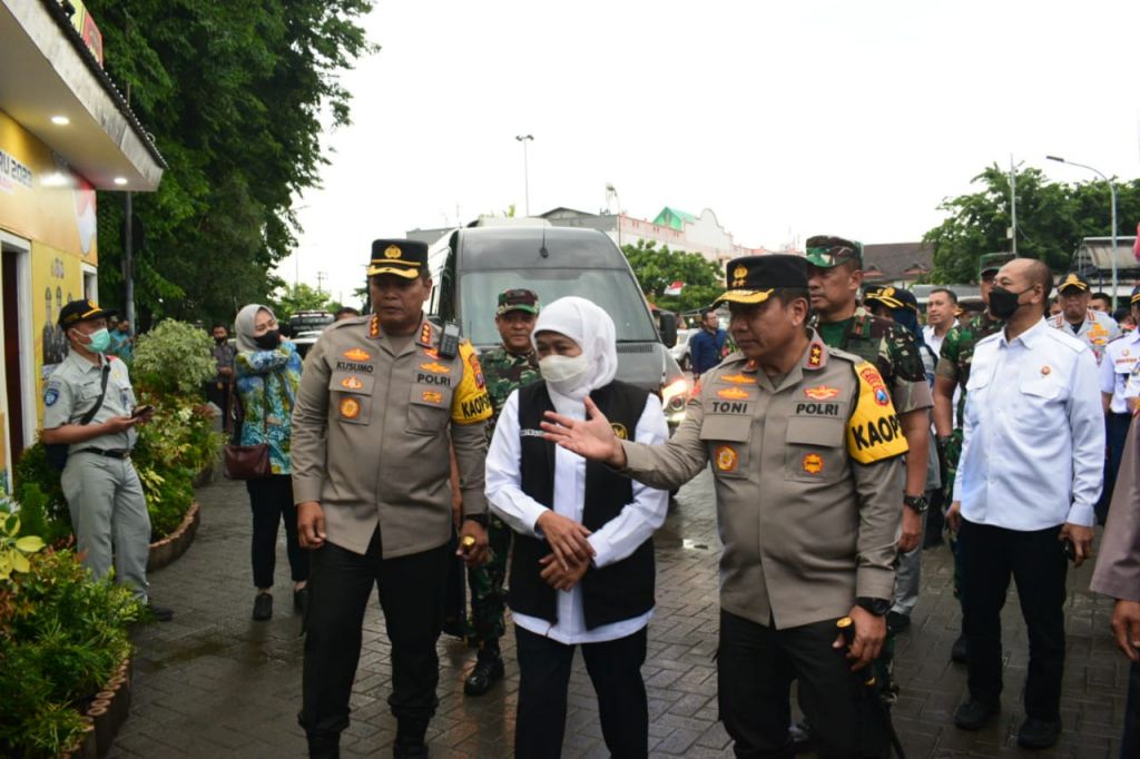 Di Pelabuhan Gapura Surya Nusantara (GSN) Tanjung Perak, Forkopimda Jatim melakukan pengecekan kesiapan Armada Kapal untuk mengangkut penumpang yang akan keluar dan masuk wilayah Jawa Timur.