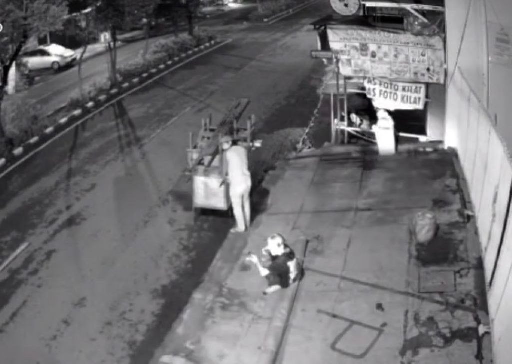 Tiba-tiba menabrak korban AR yang sedang duduk-duduk di trotoar jalan dengan menggunakan sepeda motor dan langsung melakukan pemukulan dan tendangan kearah korban yang mengakibatkan korban mengalami Luka lecet di bagian bibir dan kaki kiri, dan dua Pelaku juga merampas kaos warna hitam yang digunakan oleh korban AR serta mengambil Hand Phone merk OPPO A.92 milik Korban.