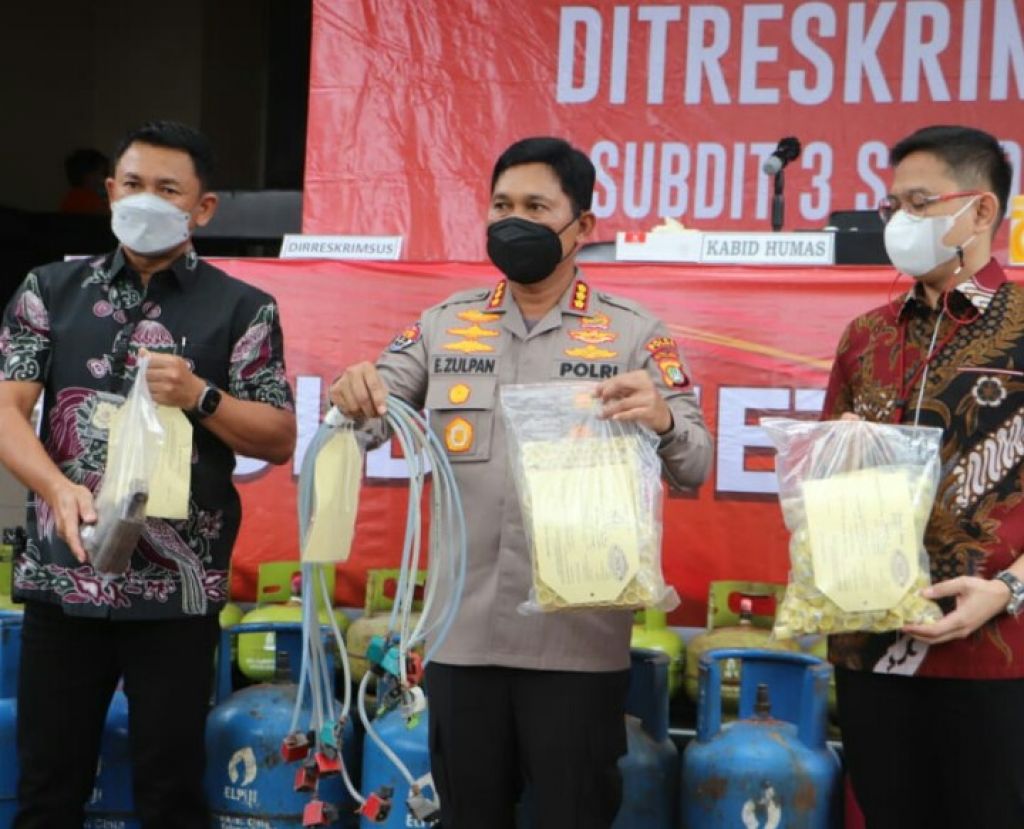 Modusnya, para tersangka memindahkan atau mengoplos gas 3 kg subsidi ke tabung kosong 12 kg non subsidi
