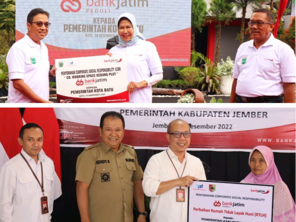 Sedangkan bantuan CSR Bank Jatim Peduli berupa Rehabilitasi 20 Unit RTLH di Kabupaten Jember diserahkan Direktur Mikro, Ritel & Menengah Bank Jatim Arief Wicaksono kepada Bupati Jember Hendy Siswanto di Balai Desa Lembengan, Kabupaten Jember.