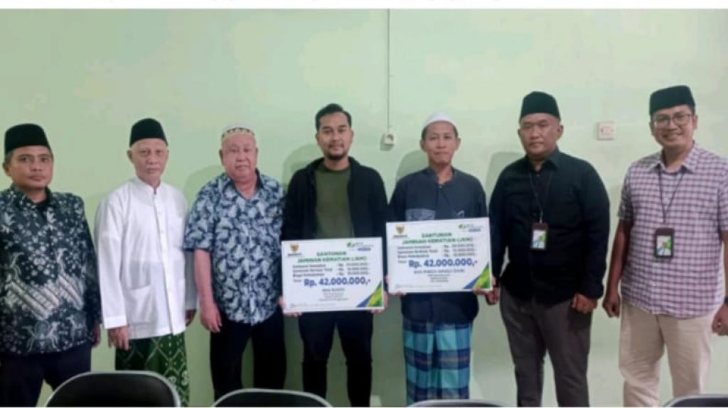 PASURUAN (Realita) - BPJS Ketenagakerjaan (BPJAMSOSTEK) Pasuruan menyerahkan manfaat program Jaminan Kematian (JKM) anggota Dewan Masjid Indonesia (DMI) Kota Pasuruan, Rabu (28/12/2022). Penyerahan santunan kematian dua peserta BPJS Ketenagakerjaan ini dilakukan di Kantor Baznas Kota Pasuruan.