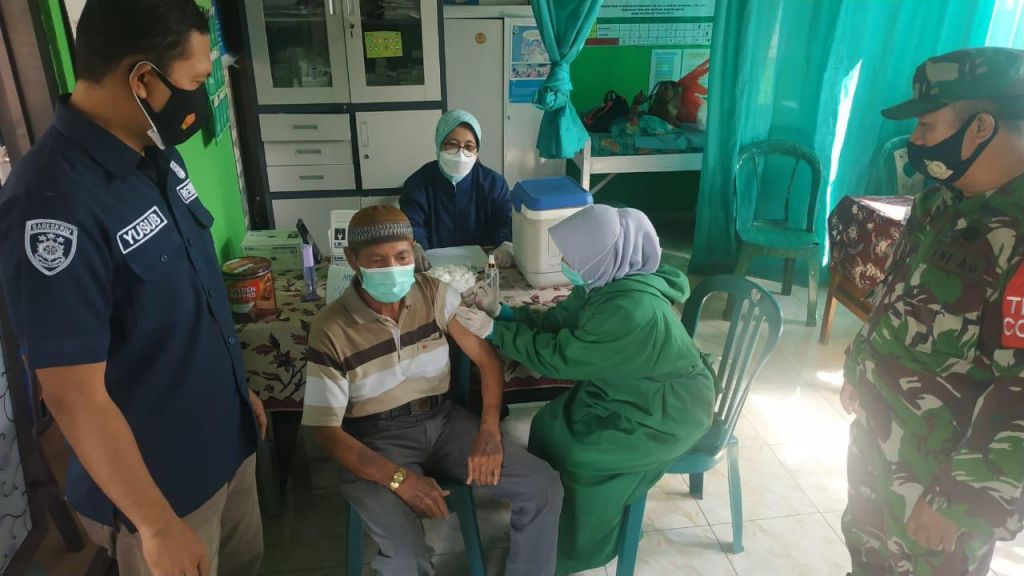 Warga Watesari ini disuntik vaksin Sinovac, untuk suntikan dosis yang pertama. Warga yang divaksin diantaranya, toko masyarakat, dan pelayanan publik.