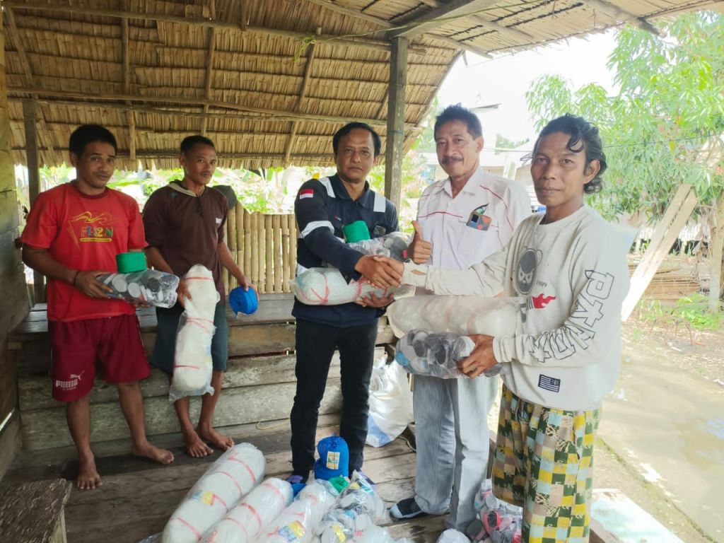 KOTABARU (Realita) - PT Personalita Sorasejahtera Serahkan Batuan Jaring Ikan kepada nelayan desa sampanahan, Kamis (19/01/2023).
