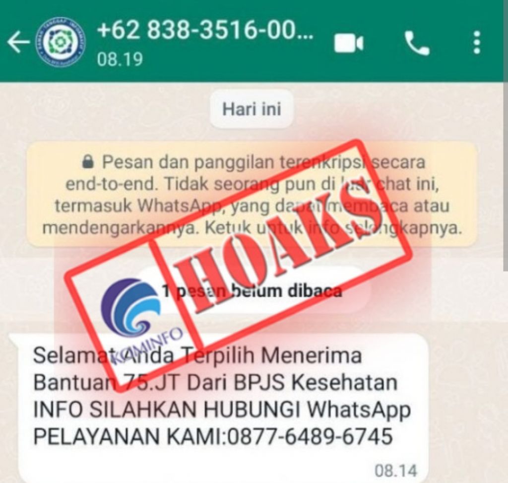 JAKARTA - Belakangan ini tengah marak penipuan berkedok BPJS Kesehatan yang salah satunya menyebar melalui pesan singkat pada platform Whatsapp. Tak tanggung-tanggung, korban diiming-imingi hadiah berupa dana bantuan BPJS senilai Rp 125 juta.