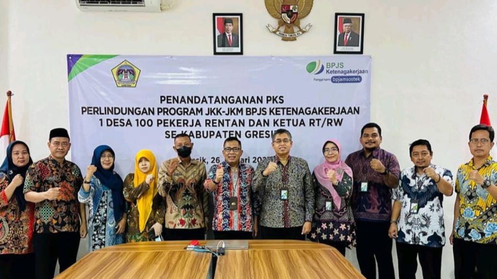 Kepala Dinas Pemberdayaan Masyarakat dan Desa (PMD) Kabupaten Gresik, Drs. Abu Hassan SH MM mengemukakan, penandatangan kerja sama ini menjadi upaya mengakselerasi kepesertaan BPJS Ketenagakerjaan.