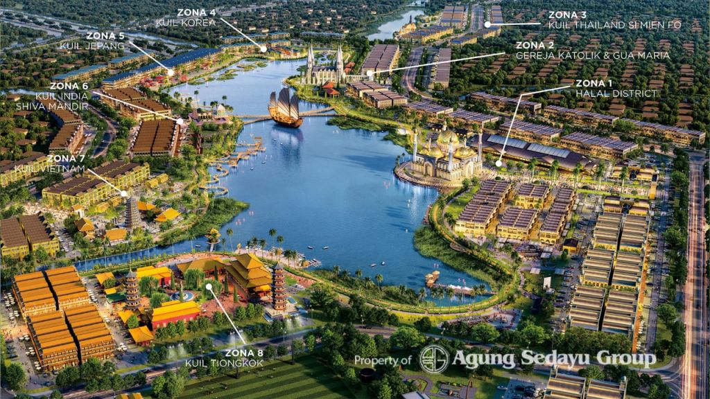 “Kawasan Ecopark mewakili keragaman kultur budaya dunia, termasuk di antaranya zona Halal yang terinspirasi dari pusat-pusat kebudayaan Islam di dunia, seperti Kerajaan Mataram dari Nusantara dan Xinjiang dari Tiongkok, zona Gereja Katolik dan Goa Maria, zona kuil Thailand yang dilengkapi Patung Budha 4 wajah, zona Kuil India Shiva Mandhir, zona Kuil Tiongkok, zona Kuil Korea, zona kuil Jepang dan zona Kuil Vietnam," tambahnya.