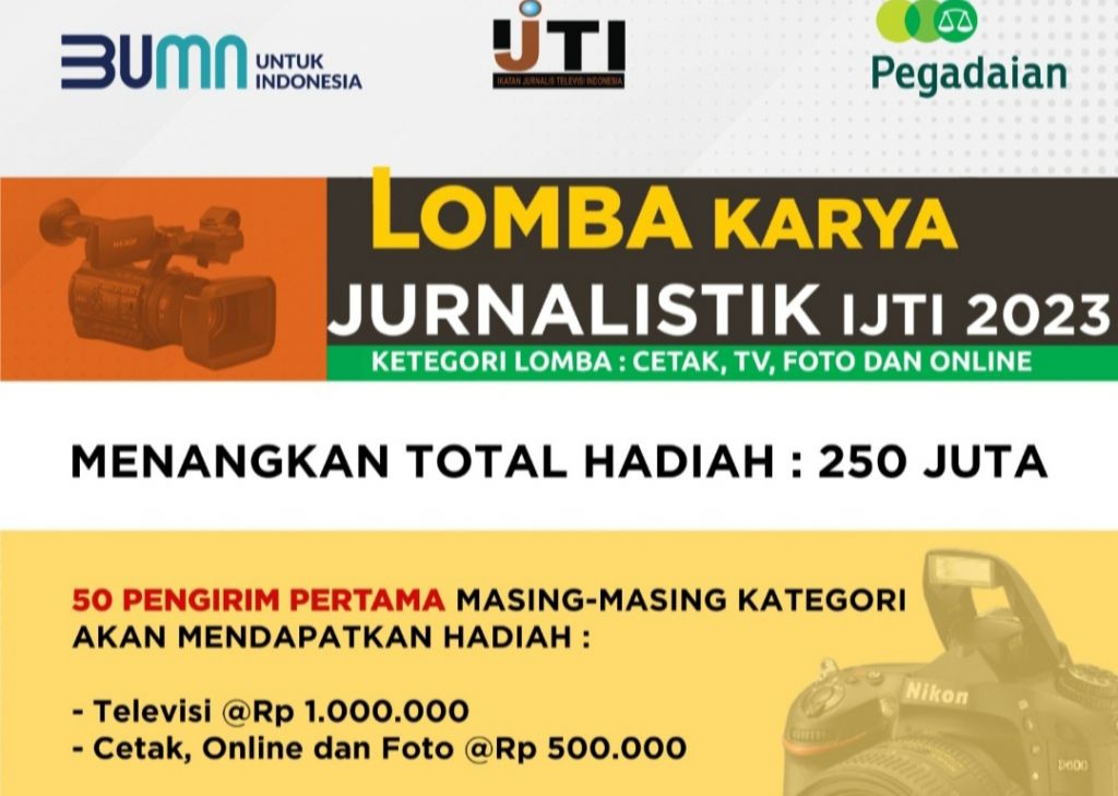 JAKARTA(Realita) -PT Pegadaian bersama Ikatan Jurnalis Televisi Indonesia (IJTI) menggelar Lomba Karya Jurnalistik dengan total hadiah Rp 250 juta. Kompetisi ini dapat diikuti oleh seluruh jurnalis televisi, cetak, online dan jurnalis foto dari Sabang sampai Merauke.