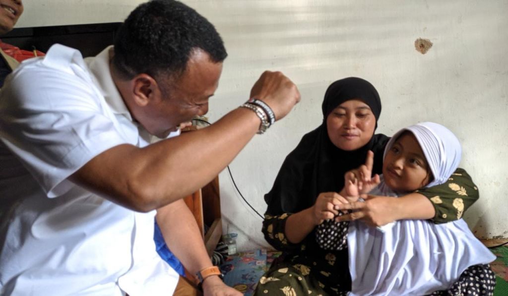 " Alhamdulillah sekali, sudah dikasih bantuan kursi roda buat anak saya. Terima kasih sekali pak Bupati," ungkapnya penuh haru.