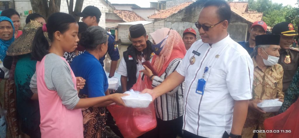 TANGERANG (Realita)- Pemerintah Kecamatan Pakuhaji memberikan makanan pada warga yang terdampak banjir di Kampung Lontar, Desa Kalibaru, Kecamatan Pakuhaji, Kabupaten Tangerang, Jum’at (03/03/2023).