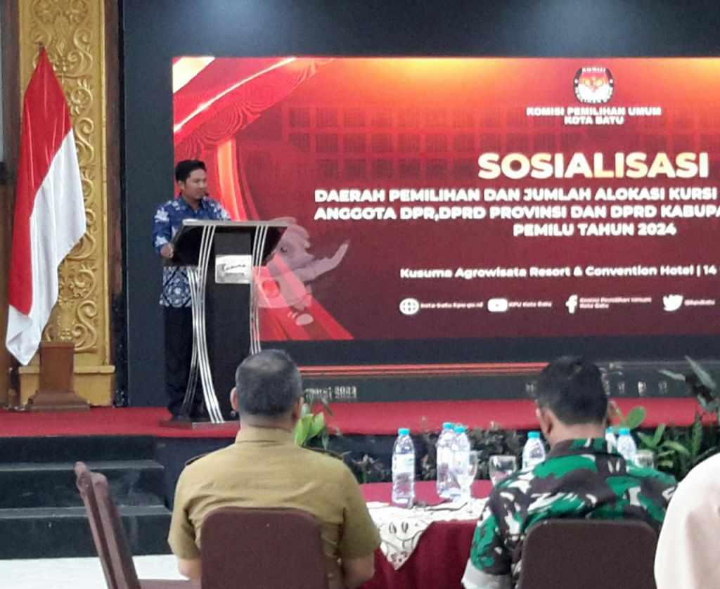 " Pada hari ini kami mengundang sebanyak 18 parpol hanya satu saja yang tidak hadir yakni Partai Buruh sehingga cuma ada 17 parpol yang mengikuti sosialisasi. Sedangkan untuk perubahaan dapil tetap ada dari penamaanya saja, kalau yang semula di tahun 2019 Batu 1 dan Batu 2 masih tetap, sedangkan Batu 3 di Junrejo dan sekarang dirubah Batu 3 di Bumiaji dan Batu 4 di Junrejo," urainya