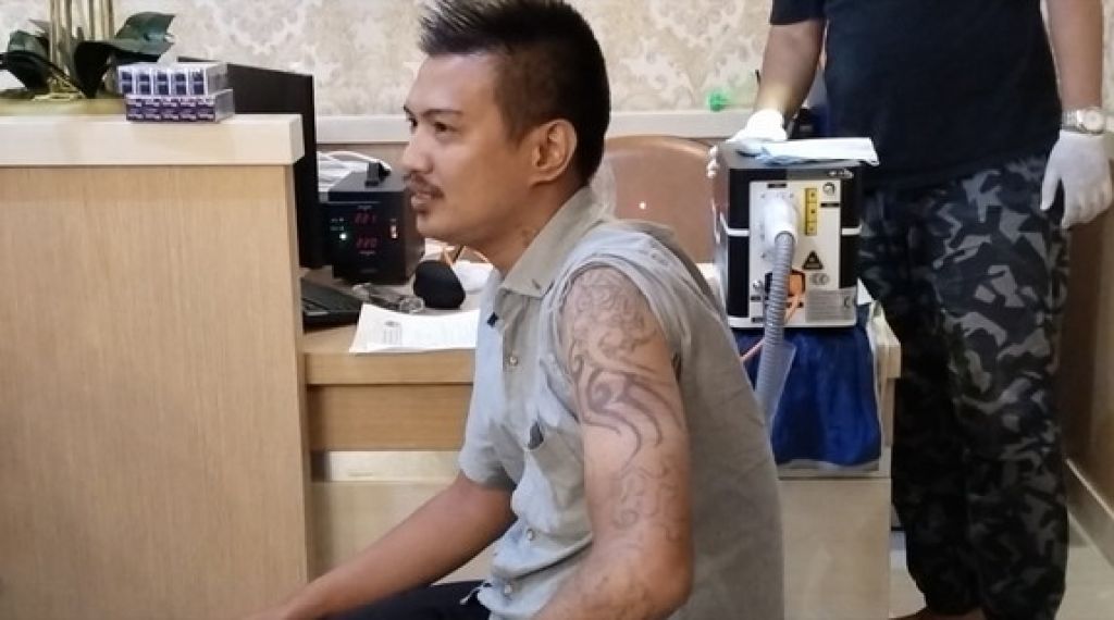 "Sakit rasanya, celkit-celkit, " kata Kolik, salah satu peserta, sembari menahan rasa sakit saat tato ditangannya di hapus oleh tim ahli tato menggunakan laser.