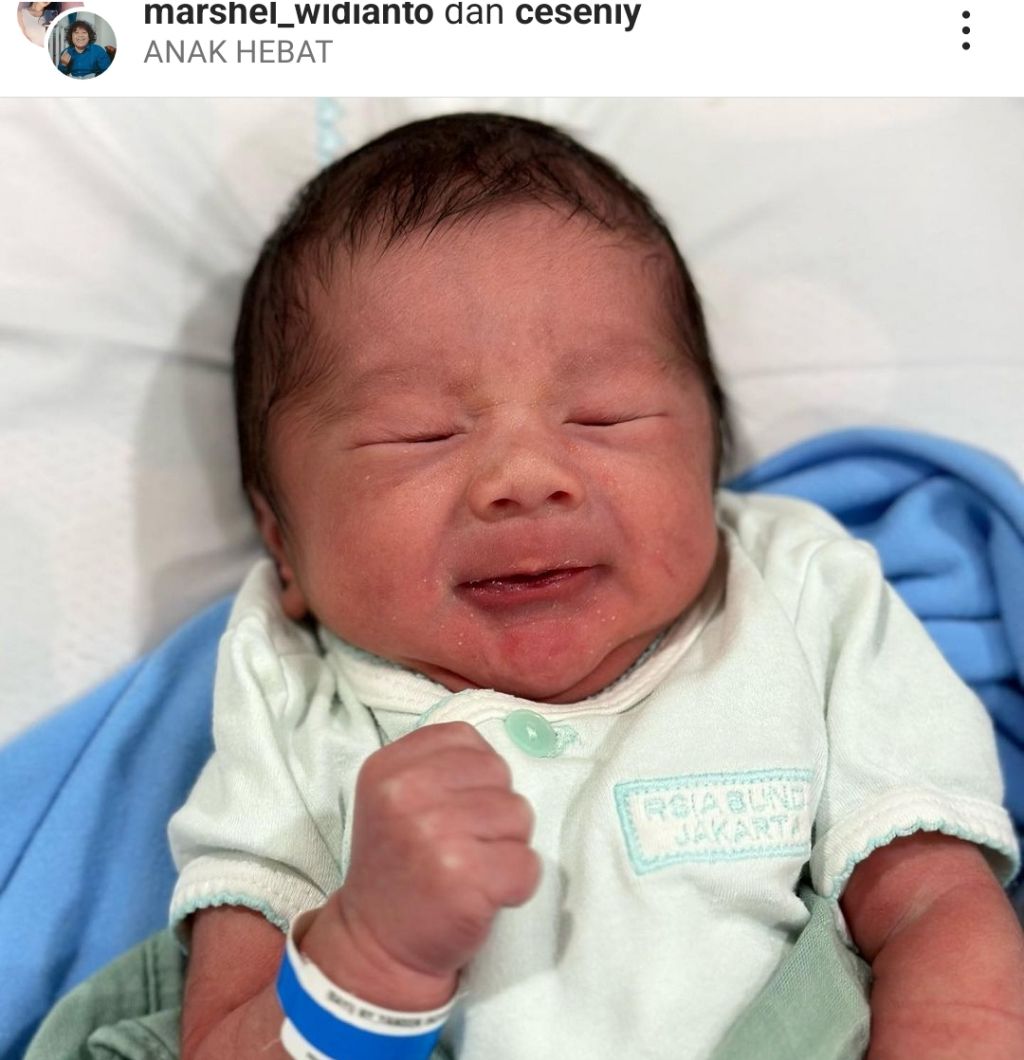 Dalam kesempatan itu, Marshel Widianto juga memperkenalkan nama dan memperlihatkan wajah anak pertamanya itu.